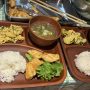 スタッフたちと食事を共にします。