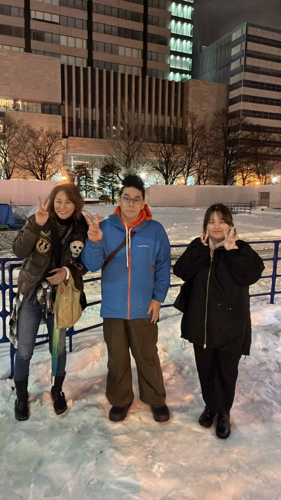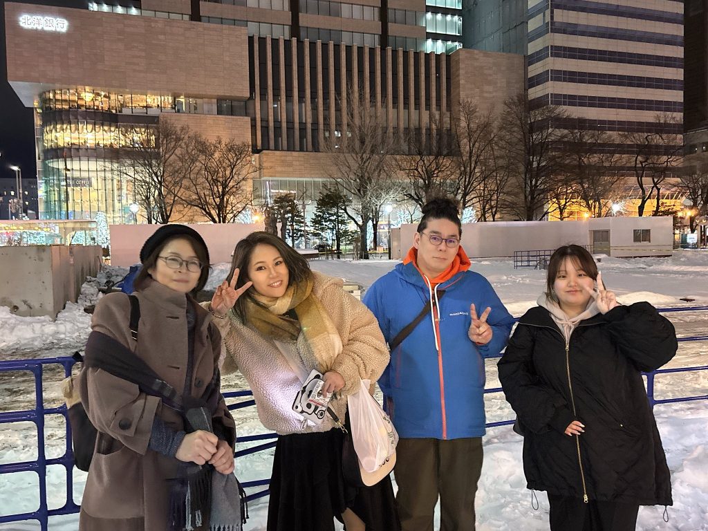大通公園は雪まつりの準備で閉鎖されているため、地下歩行空間に若者が集まっています。