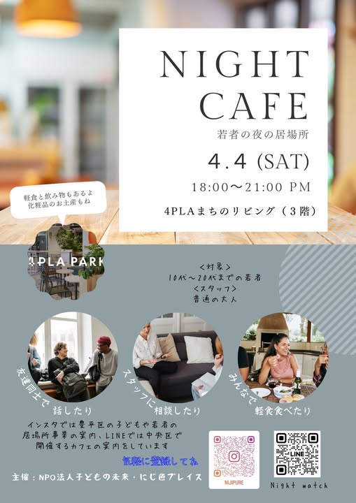 で若者向けのNight cafeを開催します。
